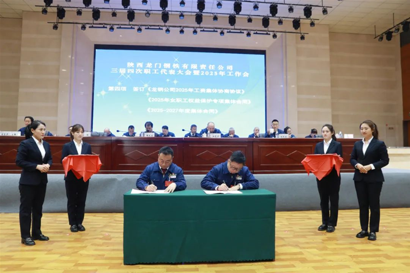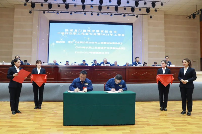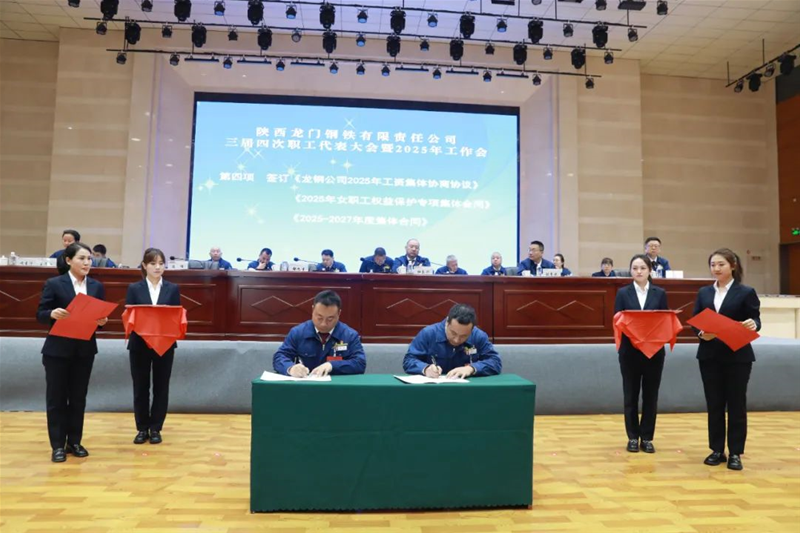 會(huì)上簽訂了《龍鋼公司2025年工資集體協(xié)商協(xié)議》《2025年女職工權(quán)益保護(hù)專項(xiàng)集體合同》《2025—2027年度集體合同》《2025年經(jīng)營(yíng)目標(biāo)責(zé)任書》《2025年安全環(huán)保目標(biāo)責(zé)任書》。