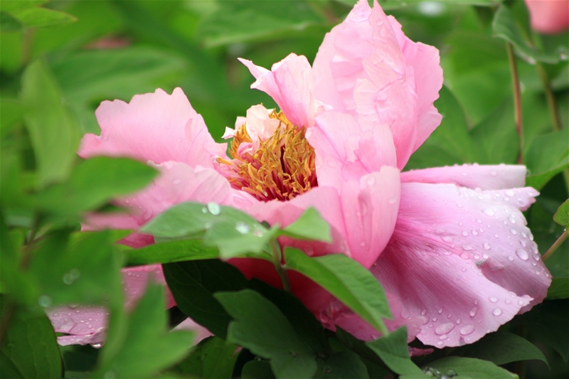 終于盼來了久違的春雨,但這個時節(jié)正是牡丹的盛開期,這滴落的雨打落了牡丹的花瓣,讓牡丹有了殘缺,再看牡丹就有了視覺上的落寂感,不由感嘆“落花有情,流水無意”啊!