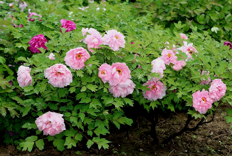 雨過天晴后,我獨自一人第三次去了牡丹園,果然牡丹樹下有了好多被雨滴打落的花瓣,也有最早開花的自然凋落花瓣。雖然有了殘缺,但好多正盛的花兒依然華美芳菲又國色天香,還有個別含苞欲放的正在抓住春光的尾巴努力綻放,向人們展示自己鮮艷的美、奔放濃郁的香。